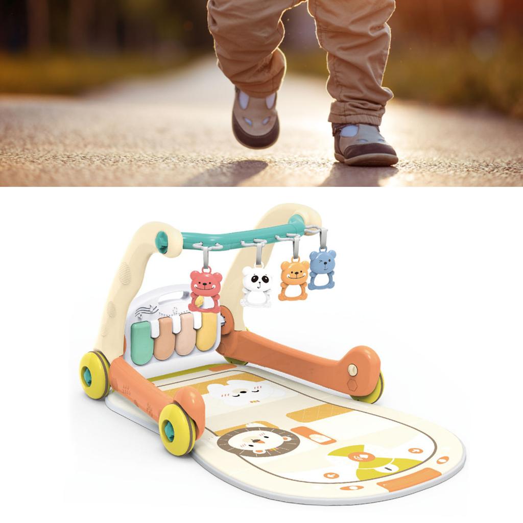 2 в 1 Детские ходунки Push Learning с мягким ковриком, ночником, клавиатурой, музыкальной игрушкой, регулируемой высотой