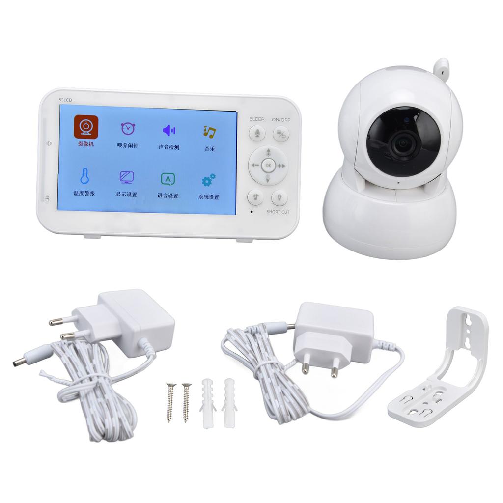 5-дюймовый детский монитор с углом поворота 355 градусов, 720P HD-дисплей, инфракрасная светодиодная подсветка, беспроводной детский видеомонитор