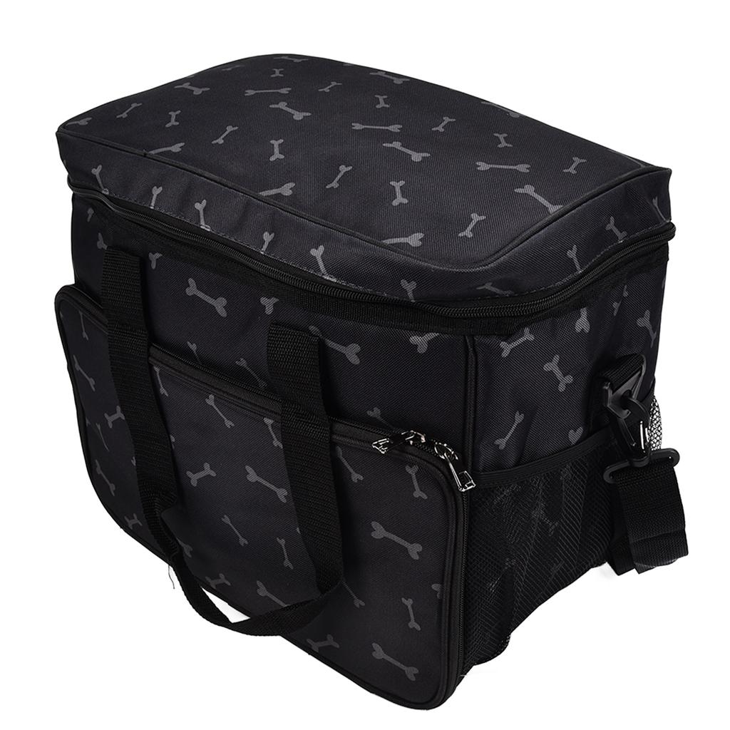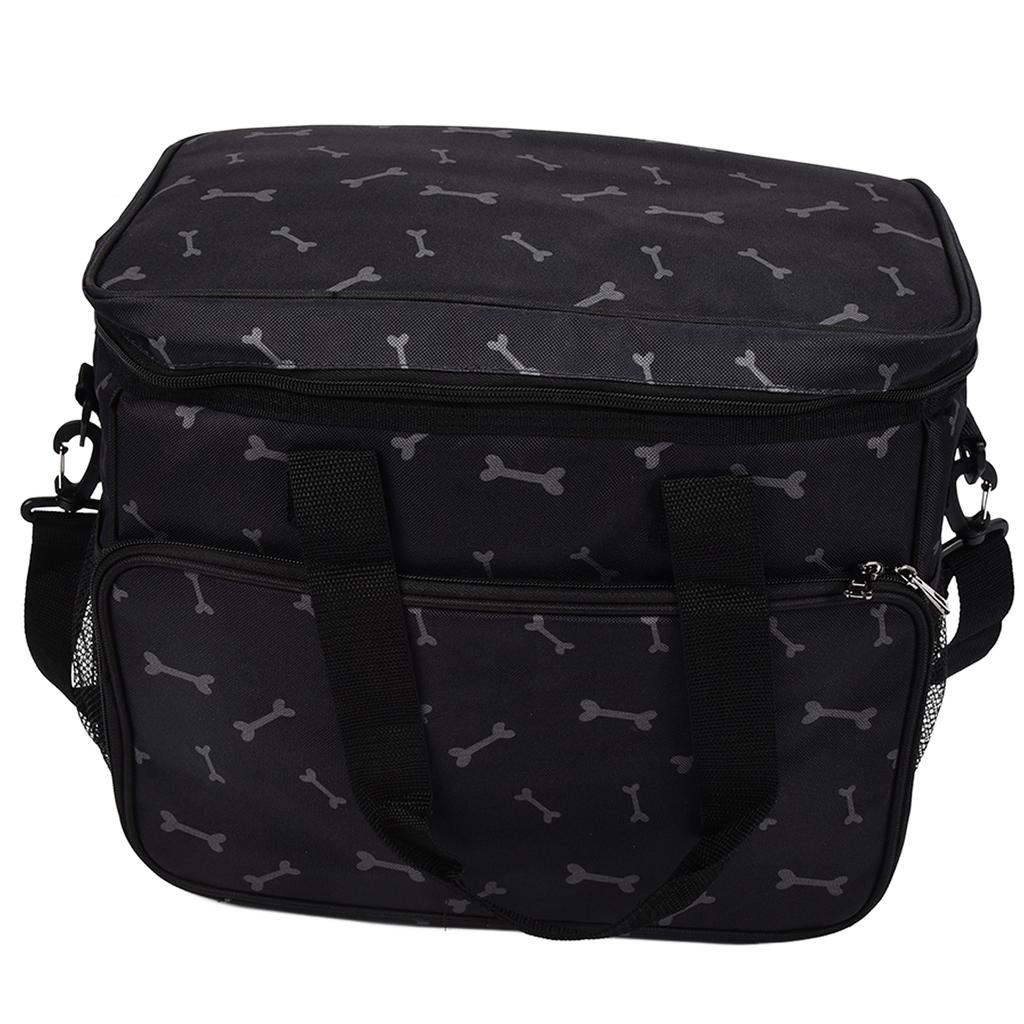 Дорожная сумка для собак из ткани Оксфорд с несколькими функциональными карманами, переноской для корма и подгузников для домашних животных с 2 контейнерами для хранения