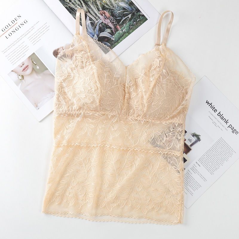 Летнее нижнее белье для сна, женская майка без бретелек, съемная подушка для груди, поддерживающая верхняя часть, сексуальный кружевной ремешок на спине