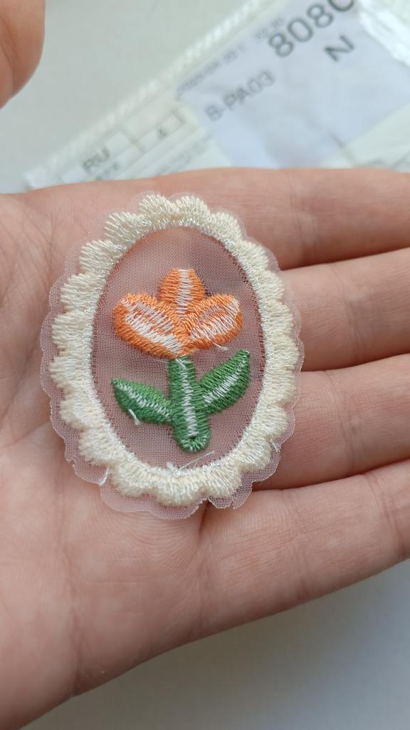 Нашивка на одежду Красивая, но её нужно пришивать ручками, она без липкого слоя, а по описанию что-то я не догадалась. Размеры соответствуют описанию.