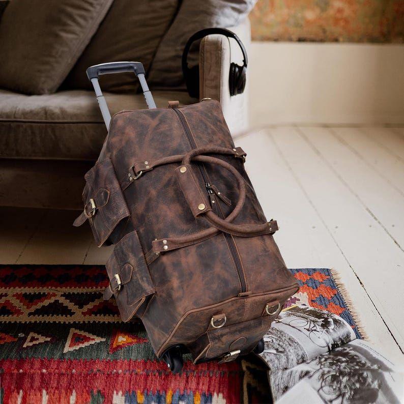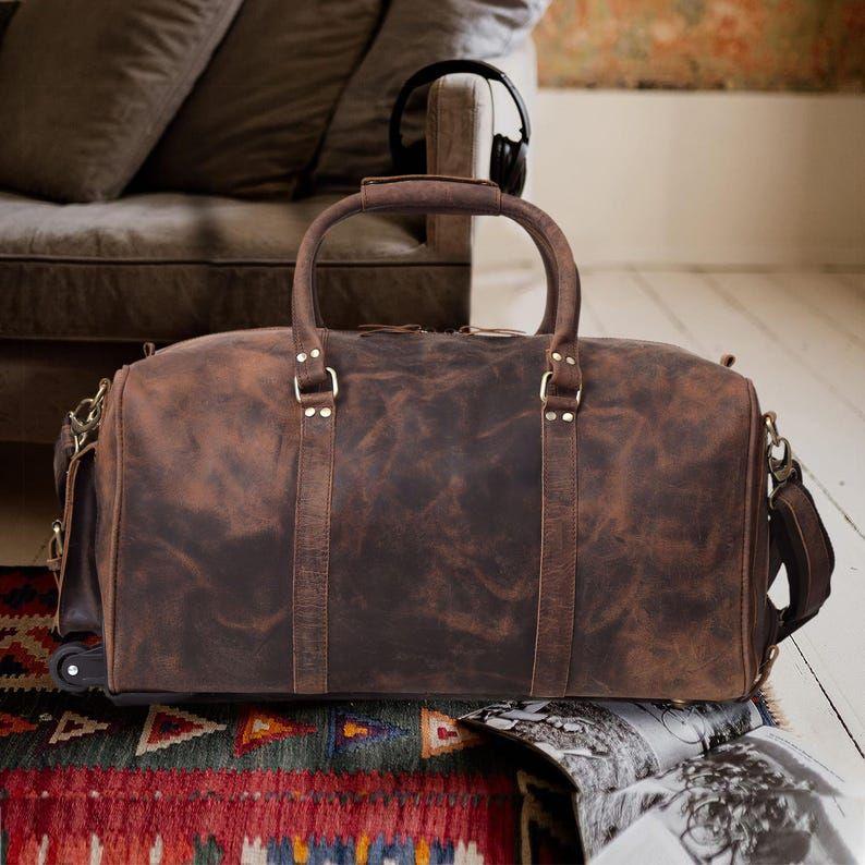 Кожаная дорожная сумка на колесиках, натуральная кожаная дорожная сумка ручной работы, мужская кожаная дорожная сумка на выходные, подарочная сумка