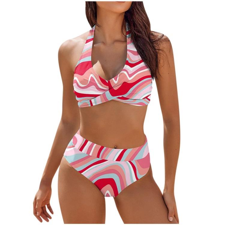 Бикини пляжный цветной блок цветочный принт женский купальник высокая талия два предмета для подростков Biquinis Feminino 2025