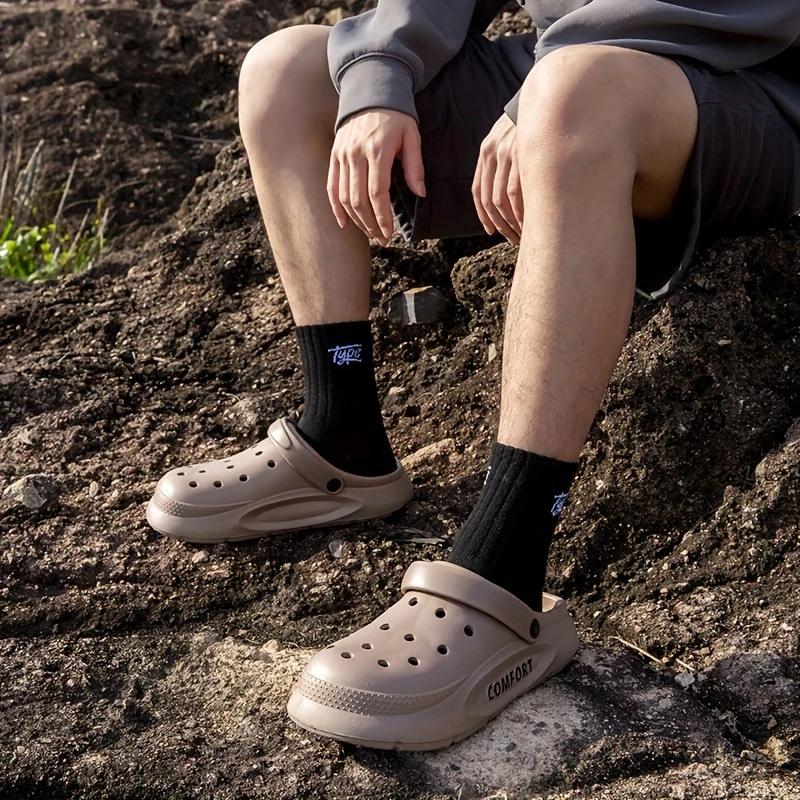 Прочные мужские сандалии для отдыха на природе, мужские модные однотонные ажурные сабо, удобные нескользящие повседневные прочные тапочки из ЭВА для мужчин, для активного отдыха летом