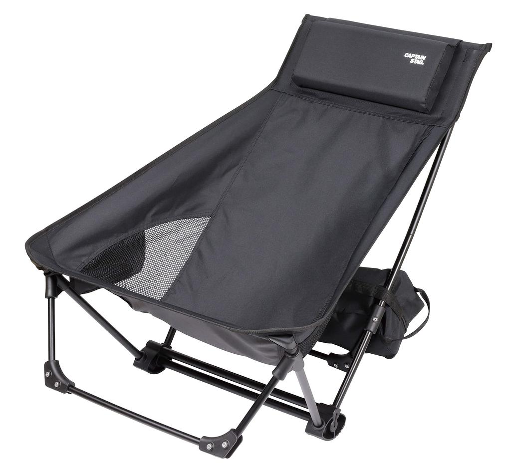 CAPTAIN STAG Уличное кресло-стул Низкий стиль Grand Кресло-реклайнер Тип сборки Высокая спинка с функцией блокировки Поставляется с подушкой и боковым карманом черного цвета