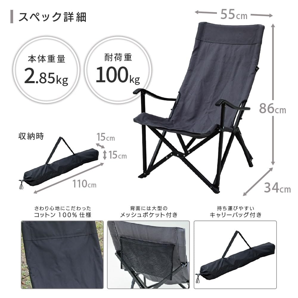 Campers Collection Стул с высокой спинкой из прочной хлопчатобумажной ткани, устойчивый к искрам, для кемпинга, легкий, компактный, в комплекте сумка для хранения