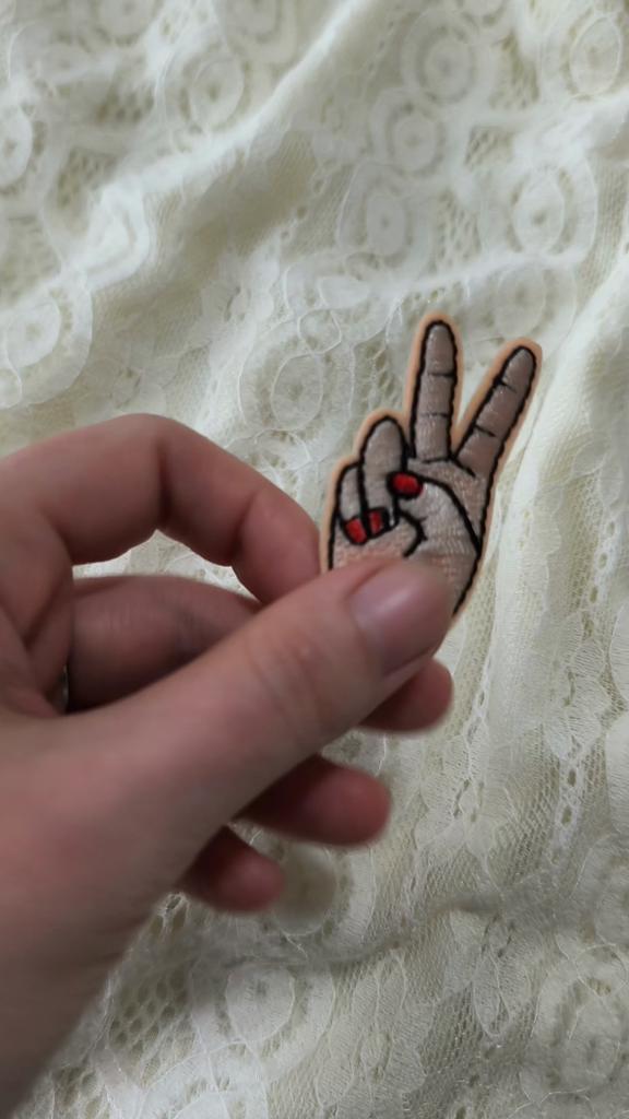 🔸Эта нашивка в виде руки, показывающей жест "победа/мир", выполнена вышивкой с красным маникюром. 🔸Компактная и стильная, она идеально подойдет для персонализации одежды, аксессуаров или рукоделия, неся позитивное послание. Спасибо продавцу ❤️ и Joom ❤️