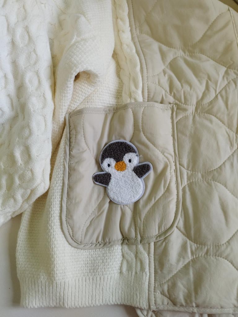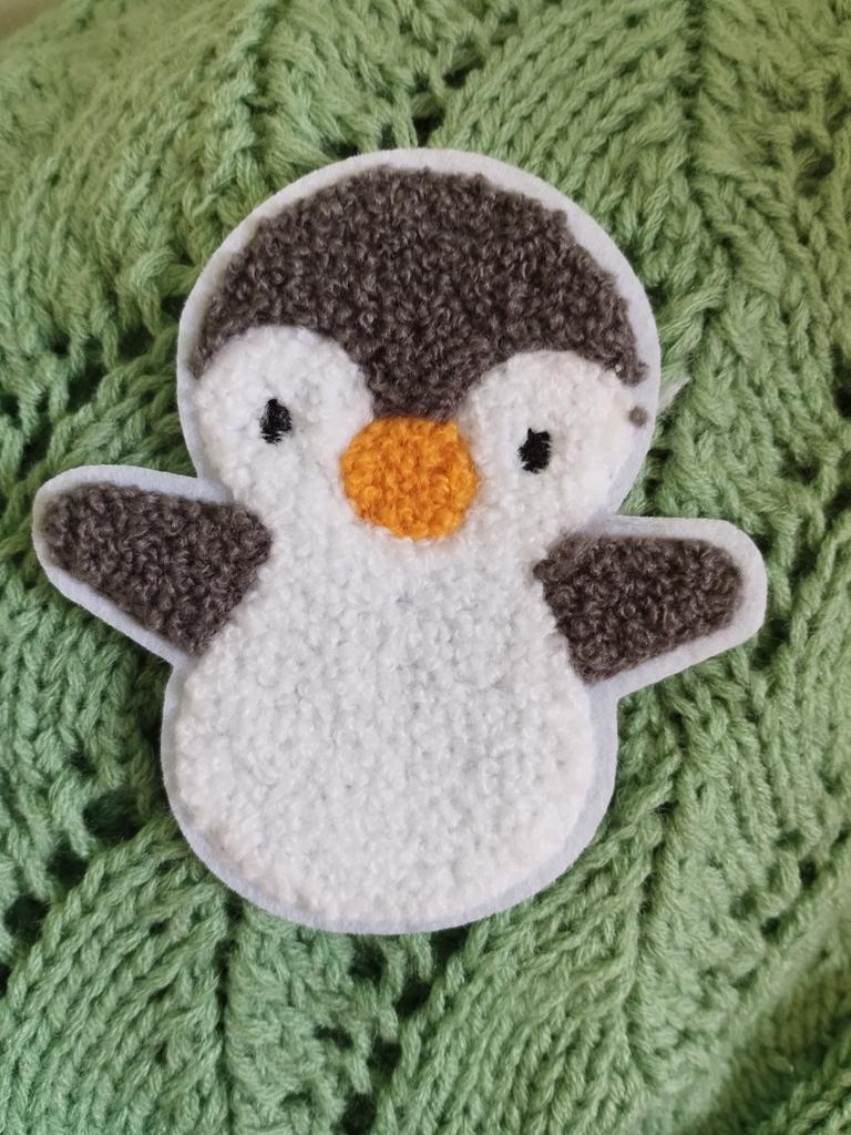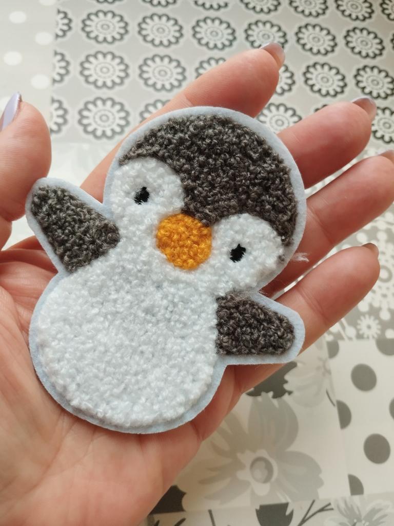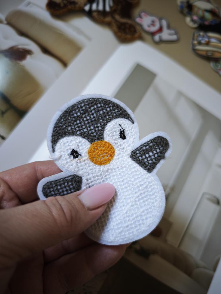Патч с пингвином. Этот вариант без липкого слоя. Покупала для дочки для декора сумок, футболок и тд.