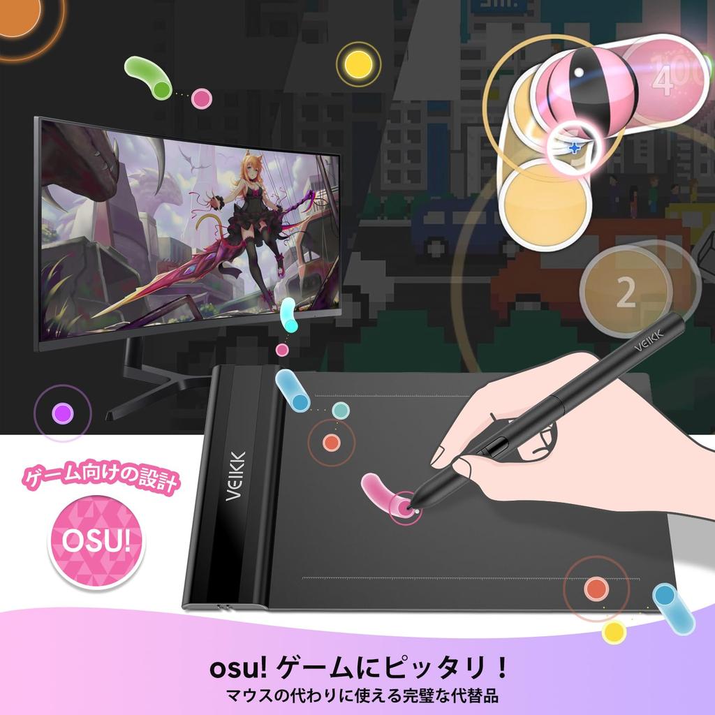 [Versatile and supports creative work] The VEIKK S640 pen tablet can be used for a wide range of purposes, including illustration production, digital drawing, 3D modeling, electronic signatures, and games (OSU!). It is also compatible with major painting programs such as Photoshop, SAI, Illustrator, Autodesk, and Microsoft Office software.