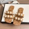 Тапочки на плоской подошве, женская верхняя одежда, лето 2025, новая корейская версия, большой размер, одно слово, повседневные, жемчужные, пляжные, классные тапочки для женщин
