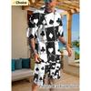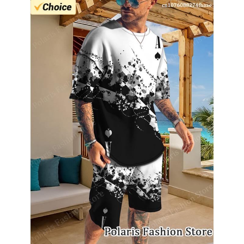 Летний черно-белый комплект футболок с принтом покера для мужчин, пляжный спортивный костюм с коротким рукавом, повседневная одежда из 2 предметов, мужская спортивная одежда