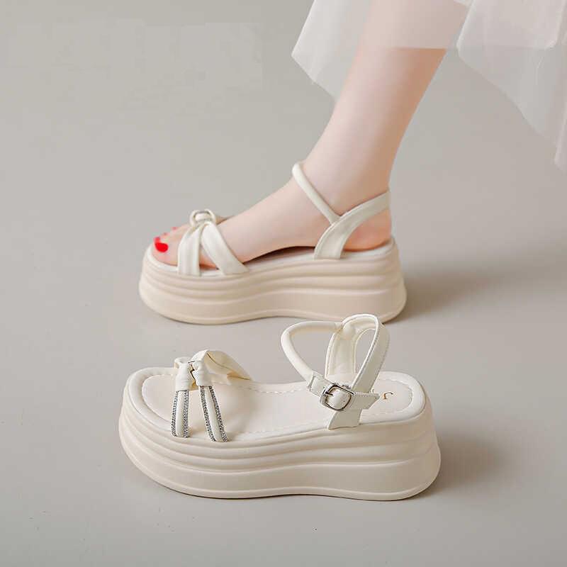 Босоножки на платформе женские летние 2024 новые модные туфли-маффины со стразами и юбками универсальные римские туфли для увеличения роста невысоких людей — купить товар онлайн с бесплатной доставкой до всему миру!