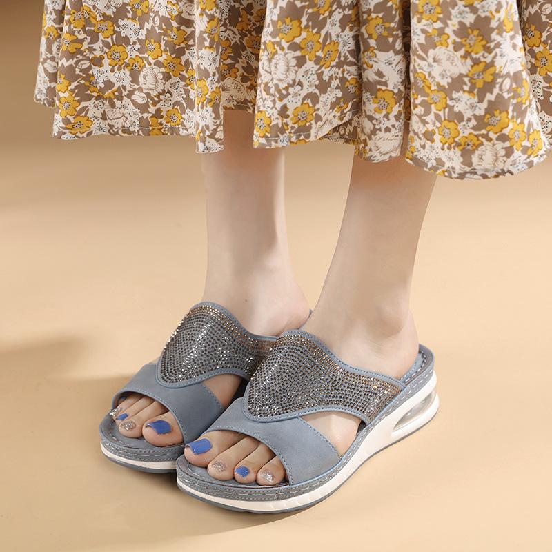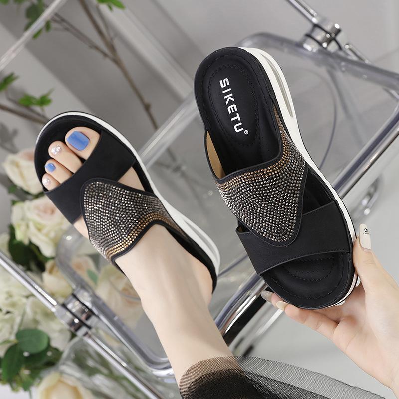 C новые весенние и летние повседневные босоножки на воздушной подушке большого размера с удобной строчкой на танкетке со стразами