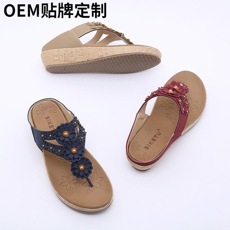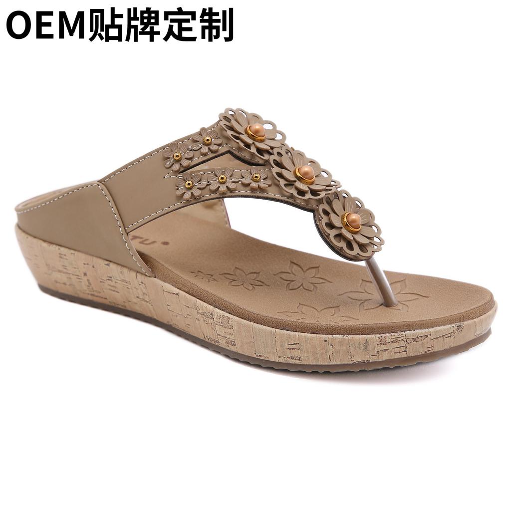 Легкая японская женская обувь, удобные тапочки на танкетке и платформе с цветочным принтом