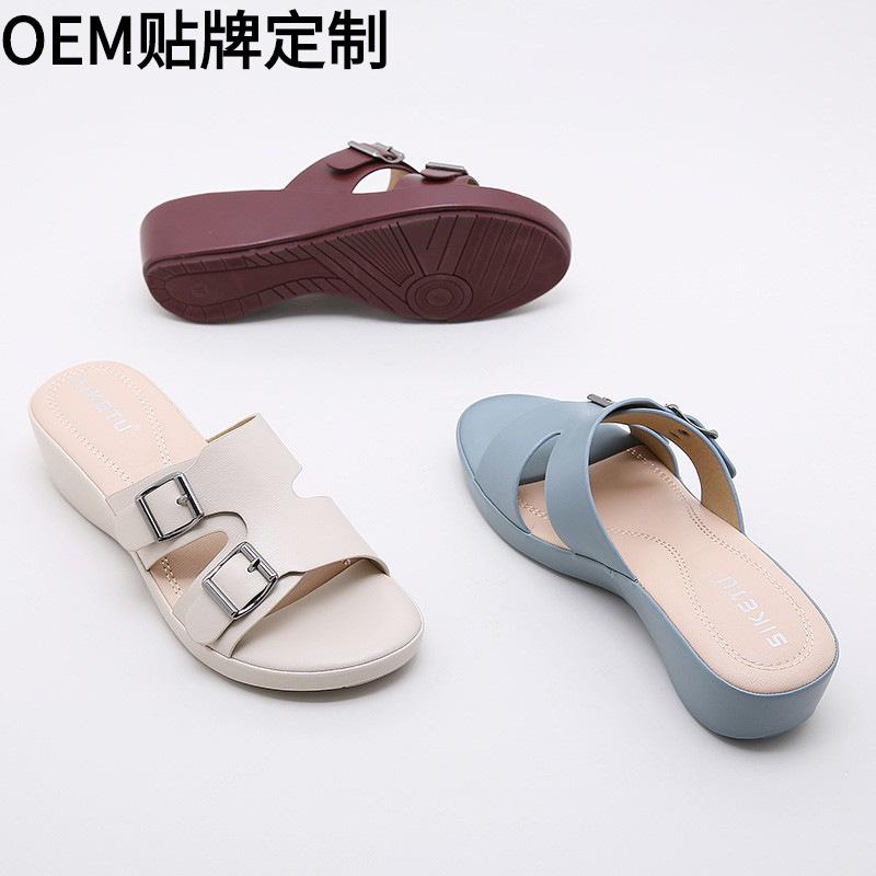 Легкие женские туфли, удобные босоножки на толстой танкетке с металлической пряжкой