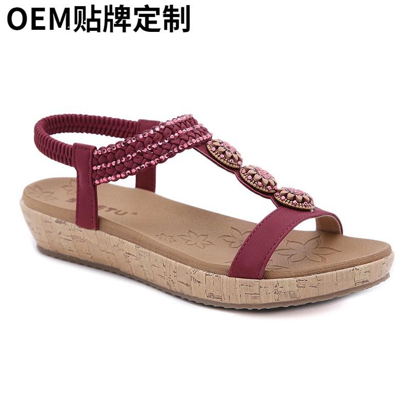 Легкие женские туфли удобные босоножки на танкетке с цветочным принтом на платформе