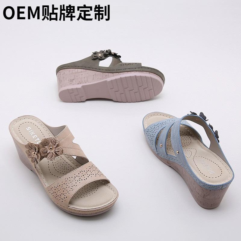 Легкие женские туфли удобные танкетки с цветочным принтом однотонные женские сандалии