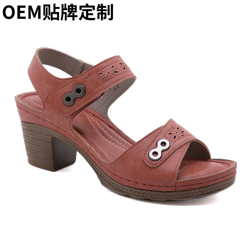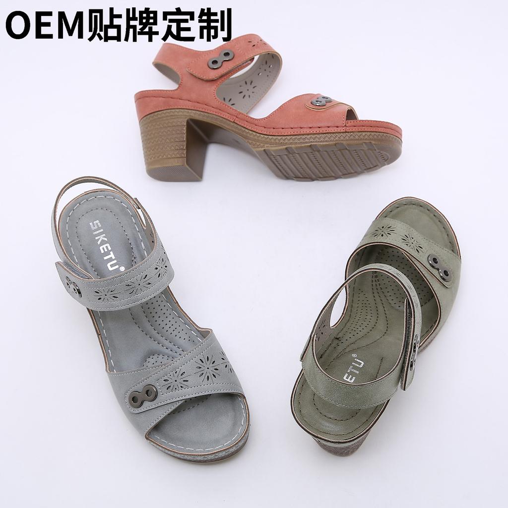 Легкие японские женские туфли универсальные сандалии на толстом каблуке с уклоном на липучке
