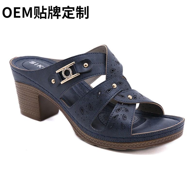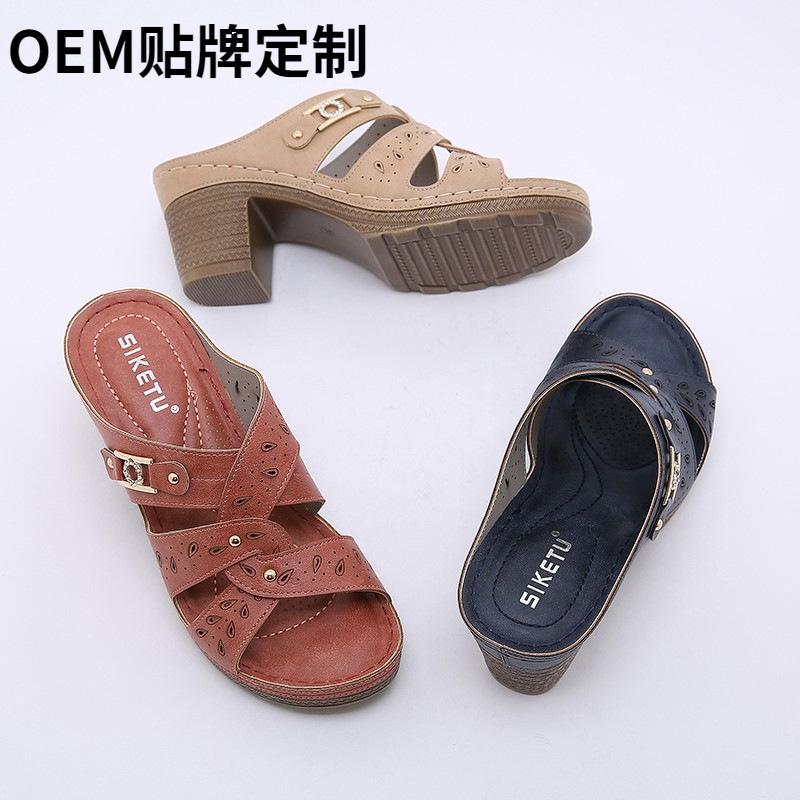 Легкие японские женские туфли, удобные тапочки на толстой танкетке с металлической пряжкой