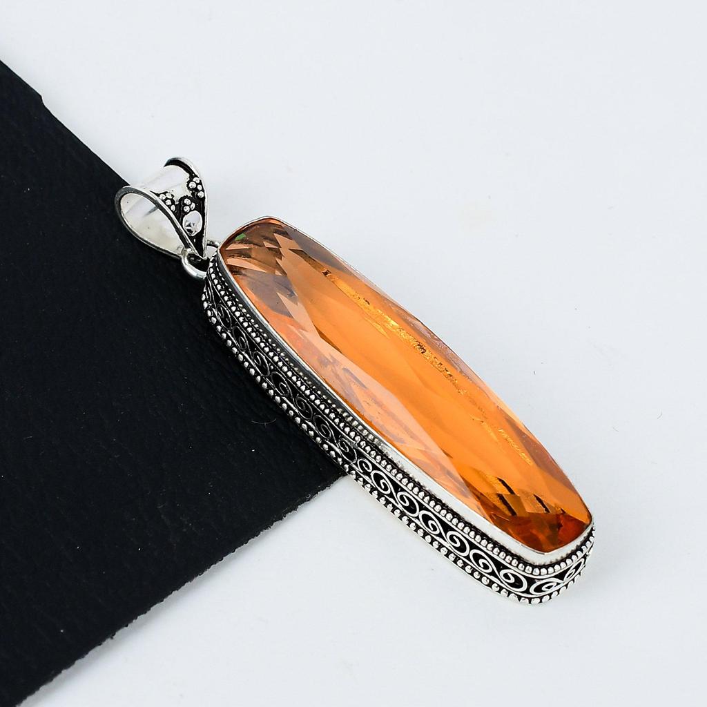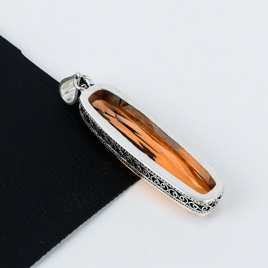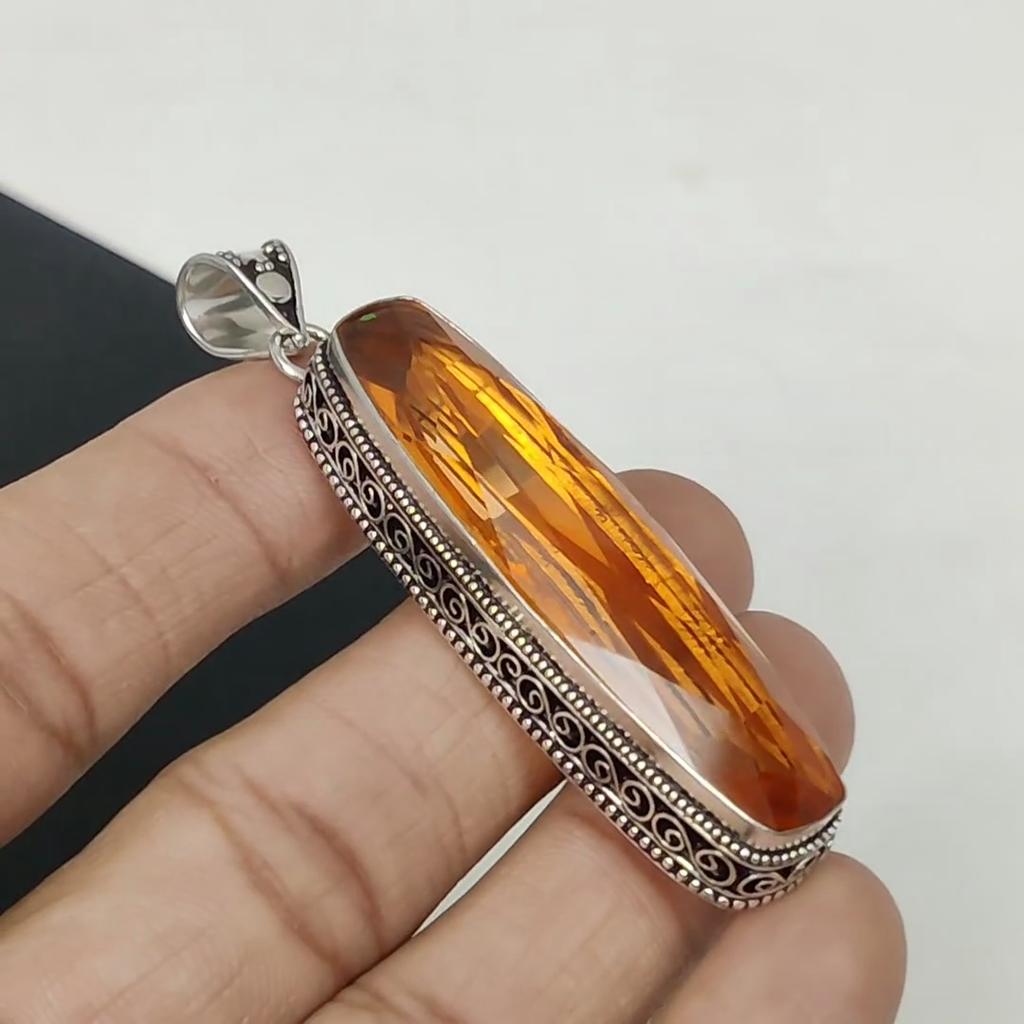 Длинный серебряный кулон с медовым топазом из стерлингового серебра 925 пробы — дизайн ручной работы, повседневные украшения, уникальный кулон с медовым топазом, пасхальные подарки
