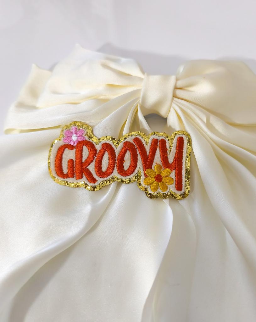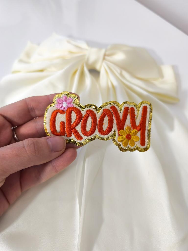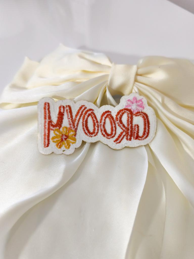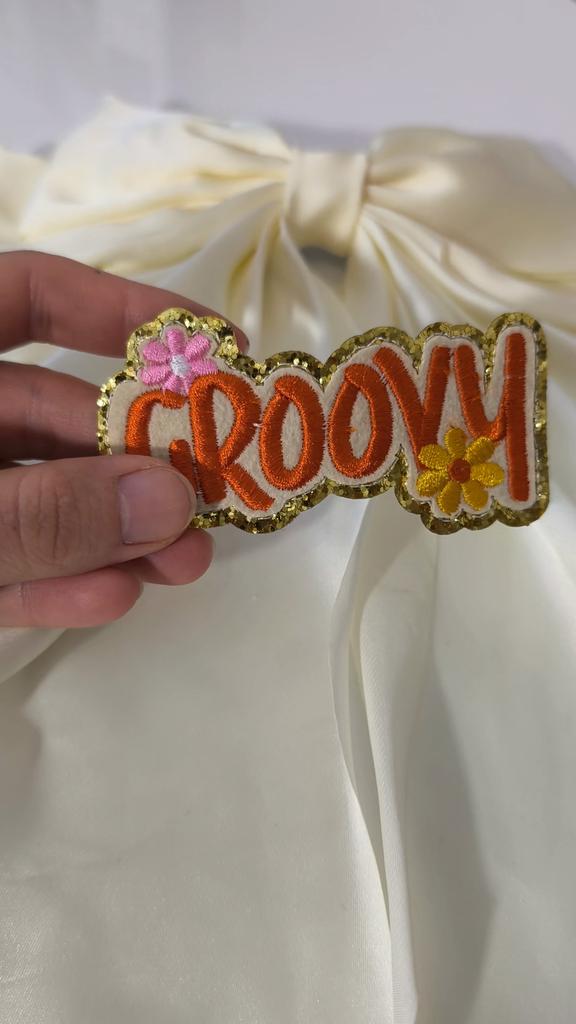 🔸Яркая нашивка "Groovy" с оранжевой надписью в белой обводке, украшенная золотыми блестками по краю и двумя стилизованными цветами - розовым и желтым. 🔸Стильный акцент с винтажным настроением. Рекомендую 👍 Ставлю ⭐ ⭐ ⭐ ⭐ ⭐ Спасибо продавцу ❤️ и Joom ❤️