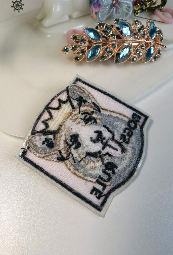Термонаклейка собака с короной Наклейка аккуратная, качественная, хочется рассматривать. Размеры соответствуют промофото. Приклеивается на одежду с помощью утюга. Можно дополнительно для надёжности пришить. Но держится крепко. Брала для декорирования верхней одежды, сумок, рюкзаков, тканевой обуви (чешки, балетки) и т. д.