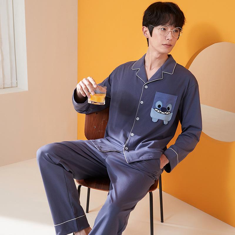 Мужской пижамный костюм весна-осень с длинными рукавами, комплект мужской домашней одежды в этническом стиле