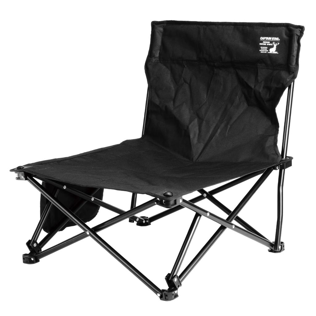 CAPTAIN STAG Outdoor Chair Wide Chair with Side Pockets and Storage Bag Black Gracia Cross-legged UC-1906