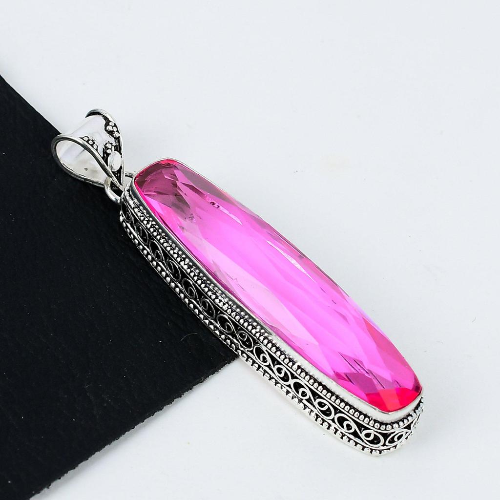 Длинный серебряный кулон с розовым кунцитом из стерлингового серебра 925 пробы — дизайн ручной работы, повседневные украшения, уникальные подарки с длинным кулоном из розового кунцита