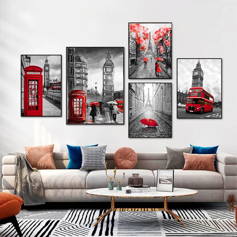 Современная башня здание Красный автобус любовник холст картина постер город настенное искусство печать декоративная картина современная гостиная домашний декор без рамы