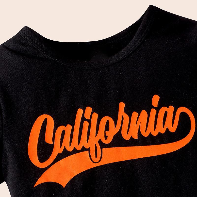 Костюм для отдыха для девочек, весенне-осенний детский модный костюм с короткими рукавами и брюками с напечатанными буквами