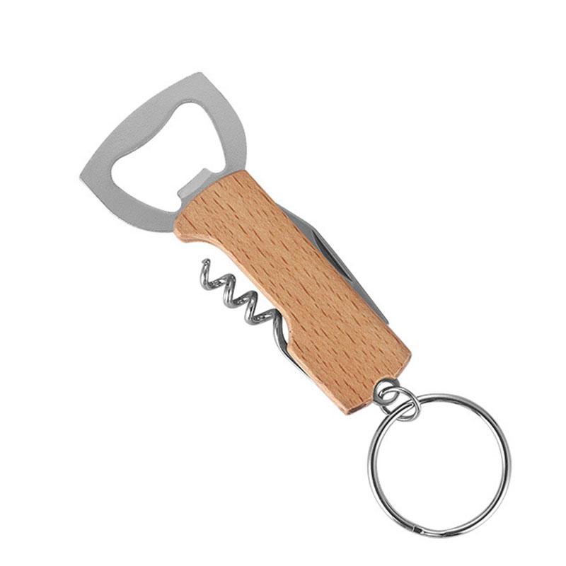 10 шт. Брелок Открывалка для пивных бутылок Нержавеющая сталь Многофункциональная Деревянная ручка Штопор Открывалка для вина Аксессуары для бара Вечеринки