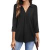Женская летняя рубашка свободного кроя с V-образным вырезом и рукавом три четверти, однотонная шифоновая рубашка