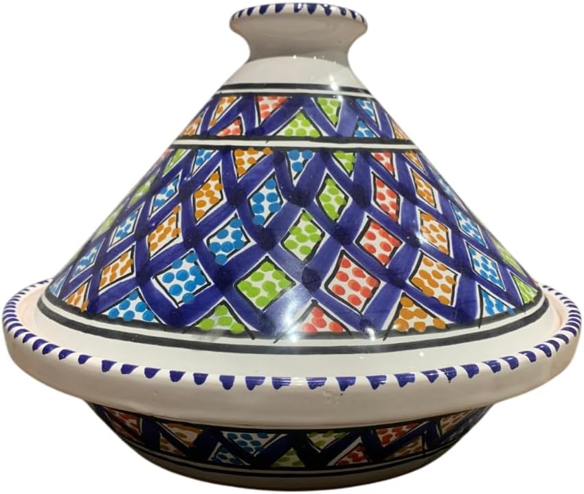 Королевский тунисский тажин ручной работы всех цветов радуги — традиционная керамическая посуда для духовки и огня — 27 см, идеально подходит для рыбы, птицы, мяса, овощей