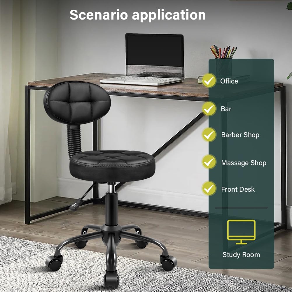 Удобный стул-табурет со спинкой: Спинка с губчатым наполнителем эффективно поддерживает спину, обеспечивая комфорт при длительном использовании, а минималистичная форма делает кресло подходящим для любого случая.