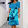 Свободные платья с принтом 3D-бабочки, летнее женское вечернее платье с круглым вырезом и коротким рукавом, элегантный женский сарафан