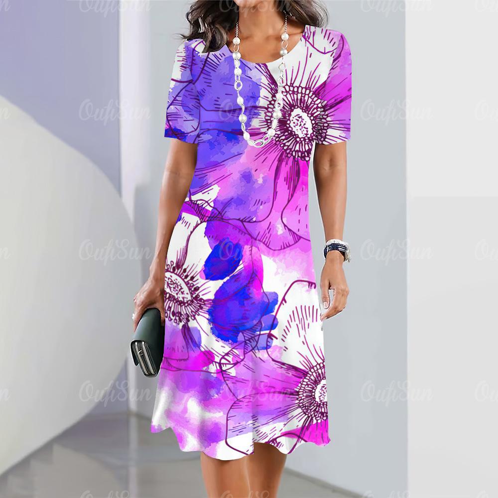 Модные новые женские платья с цветочным принтом 3D, летнее элегантное платье с коротким рукавом, женская одежда больших размеров — купить товар онлайн с бесплатной доставкой по всему миру!