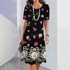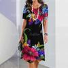 Новые женские платья, элементы 3D-цветочной печати, элегантные повседневные платья с коротким рукавом, модные женские платья больших размеров 2024 года