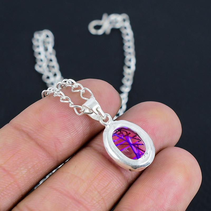 Розовый рутил 10x14 Подвеска-цепочка с замком S Ручной работы Тонко полированная Подвеска из стерлингового серебра 925 пробы с современным дизайном Подарок на свадьбу для невесты