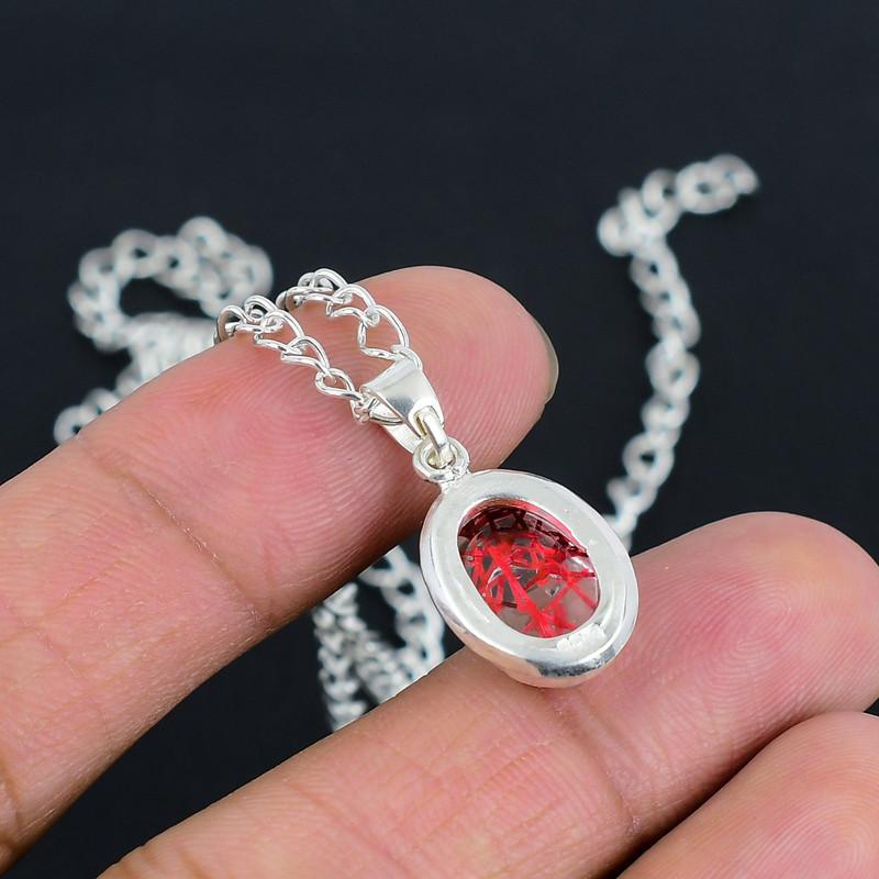 Red Rutile 10x14 S Lock Chain Pendant HandCrafted Fine Polished 925 Sterling Silver Pendant with Morden Design Gift for Wedding Bridal