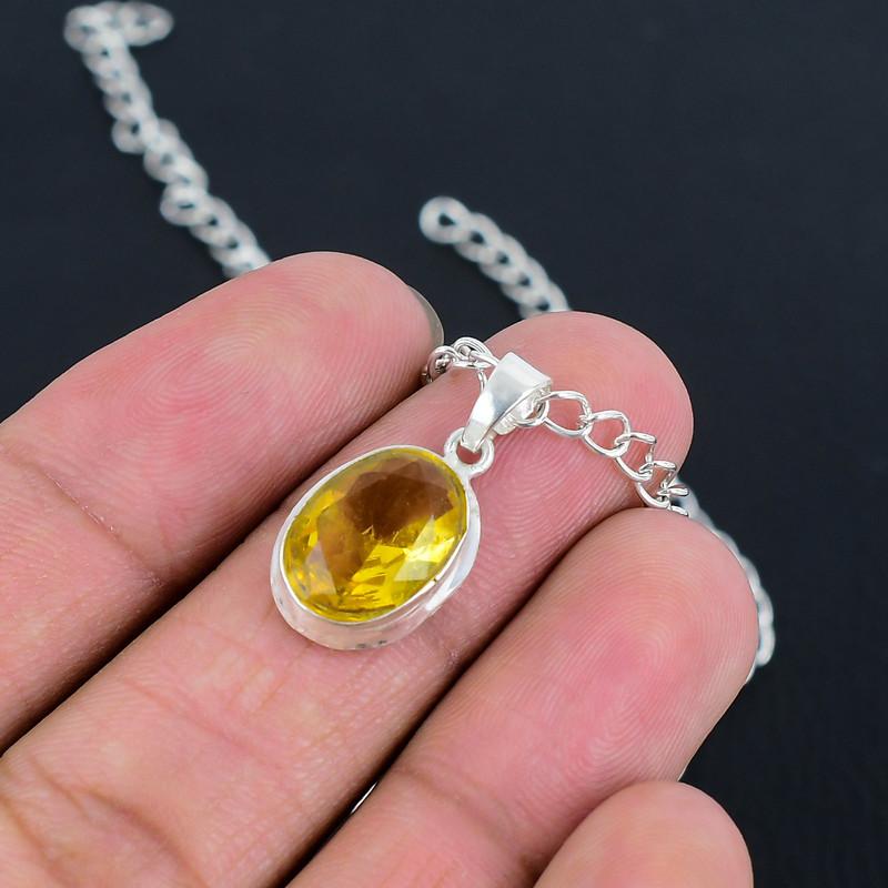 Желтый цитрин 10x14 Подвеска-цепочка S-замок Ручной работы Тонко отполированная Подвеска из стерлингового серебра 925 пробы с современным дизайном Подарок на свадьбу для невесты