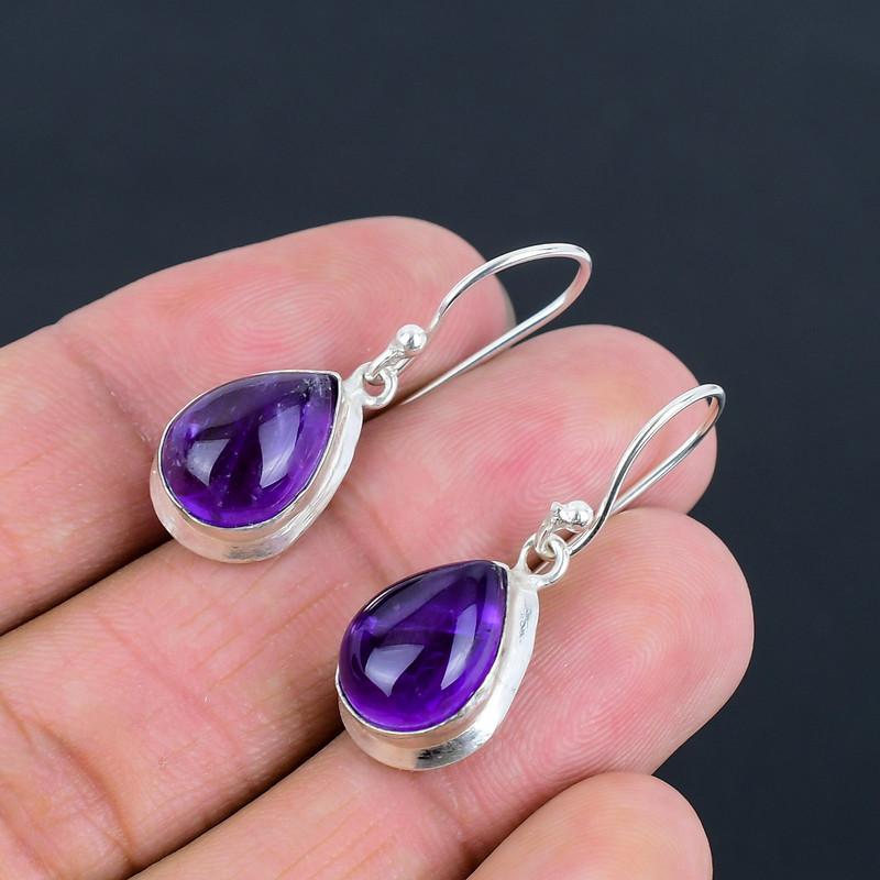 Натуральный королевский синий аметист кабошон серьга из стерлингового серебра 925 пробы ручной работы легкая серьга ручной работы подарок для лучшей девушки подарок для невесты