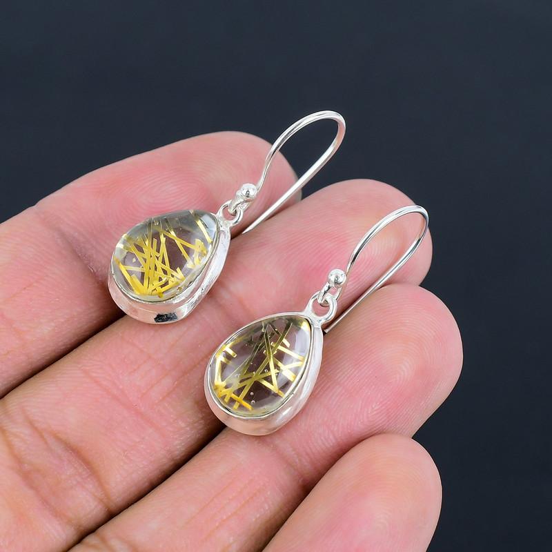 Натуральные золотистые рутиловые серьги-капли из стерлингового серебра 925 пробы ручной работы, легкие, ручной работы, подарок для лучшей девушки, подарок для нее, на День благодарения