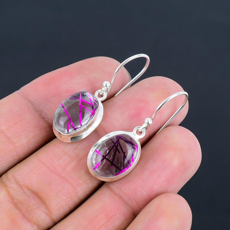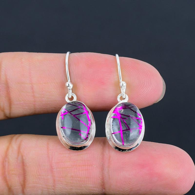 Натуральные розовые рутиловые серьги-капли из стерлингового серебра 925 пробы ручной работы, легкие, ручной работы, подарок для лучшей девушки, подарок для нее, на День благодарения