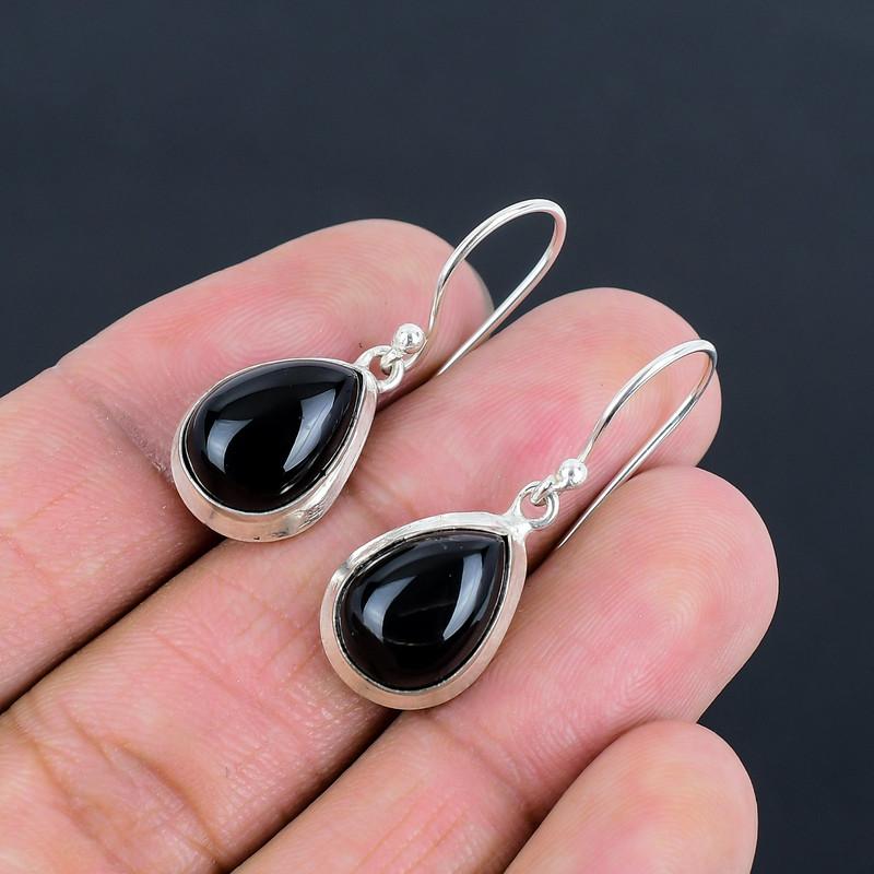 Серьга-капля с черной шпинелью, серебро 925 пробы, ручная работа, легкая серьга, серьга ручной работы, подарок для лучшей девушки, подарок для нее, День благодарения