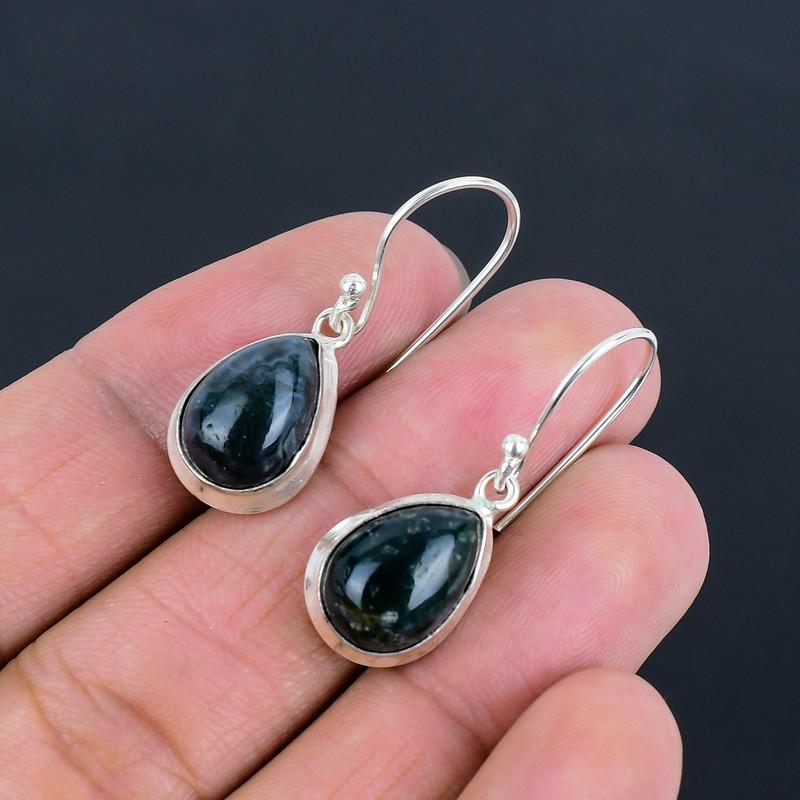 Кабошон Мохового Агата Серьга из Стерлингового Серебра 925 пробы Ручной Работы Легкая Серьга Ручной Работы Подарок для Лучшей Девушки Подарок для Невесты
