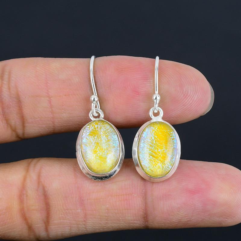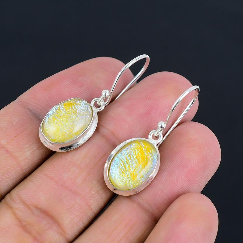 Серьга с желтым опалом овальной формы, серебро 925 пробы, ручной работы, легкая, ручной работы, подарок для лучшей девушки, подарок для нее, День благодарения
