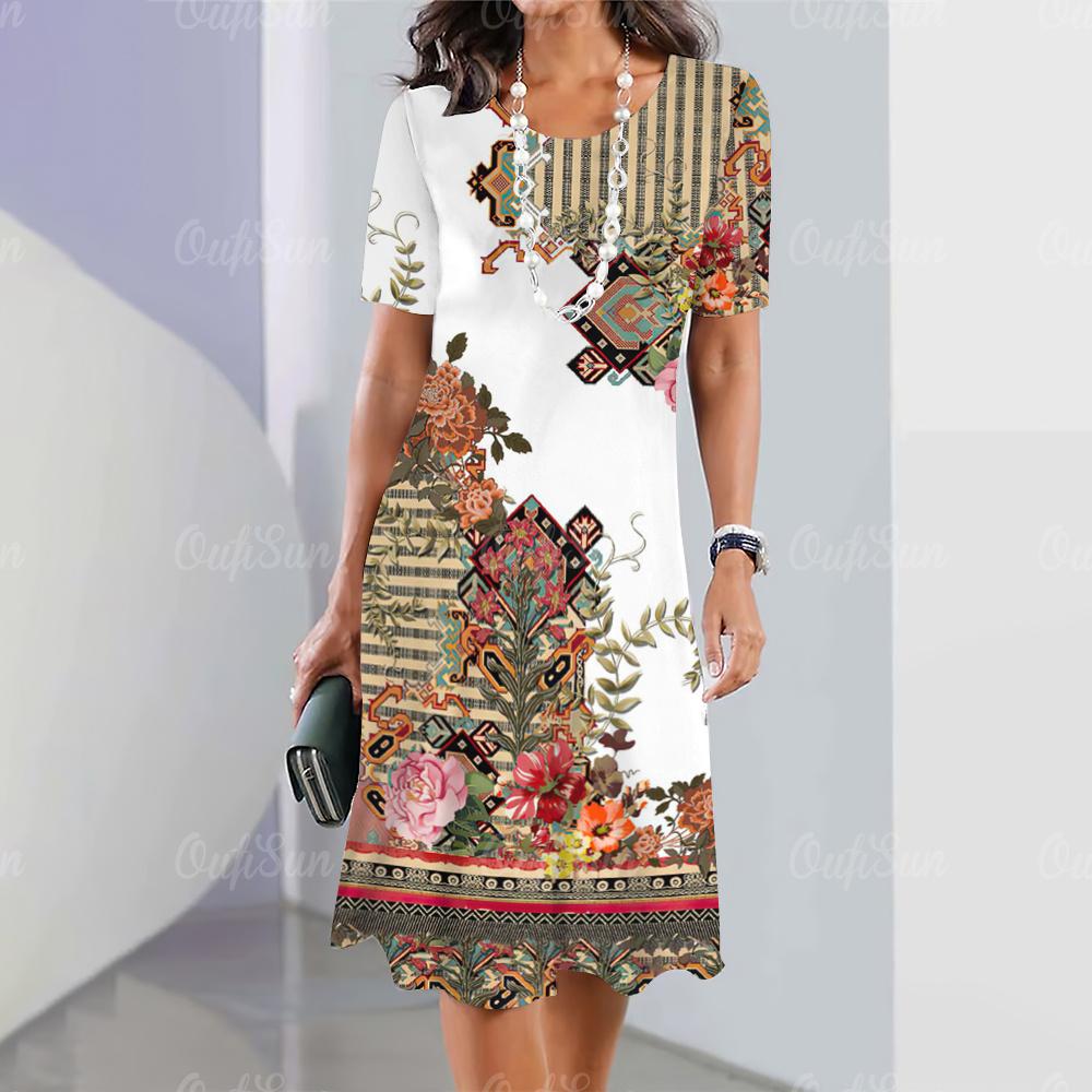 2025 Новые женские платья с принтом в стиле барокко Летнее элегантное платье Женские платья с коротким рукавом Модная одежда больших размеров — купить товар онлайн с бесплатной доставкой по всему миру!
