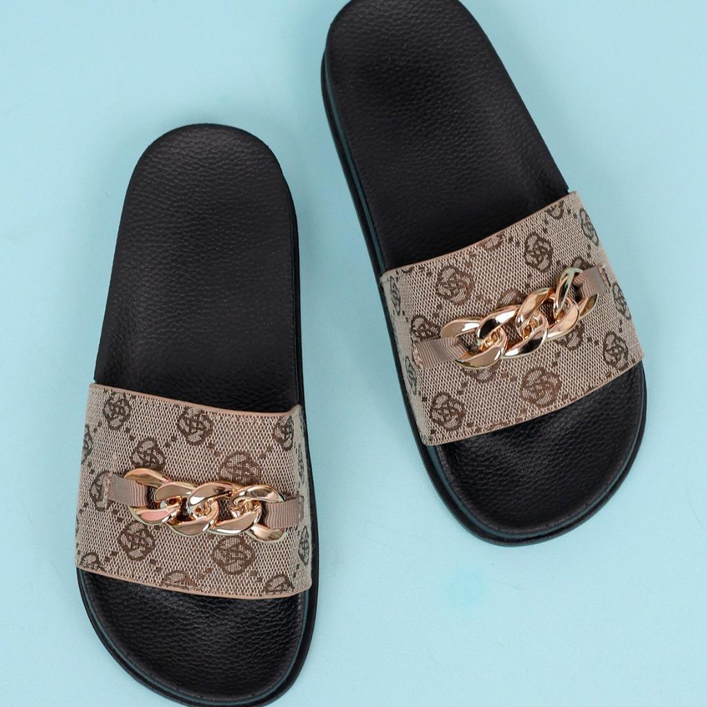 Женские тапочки с толстой подошвой, вышитой цепочкой, и одним словом, которые можно носить на мягкой подошве, а также модные пляжные тапочки