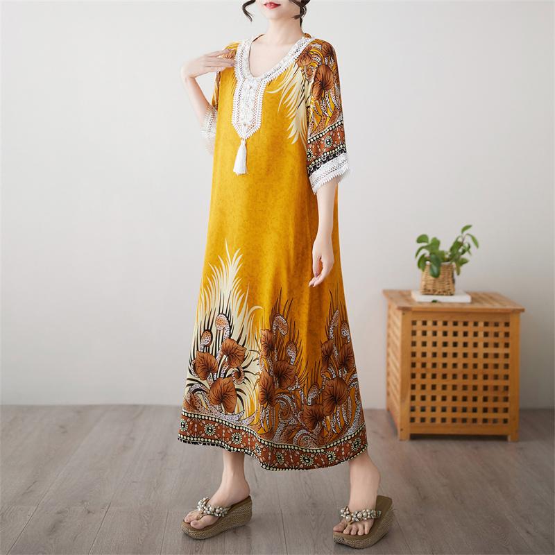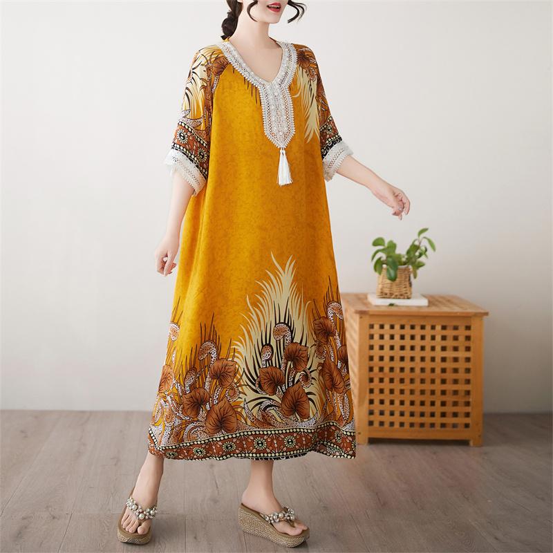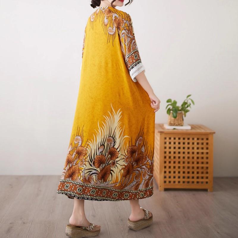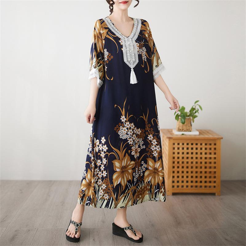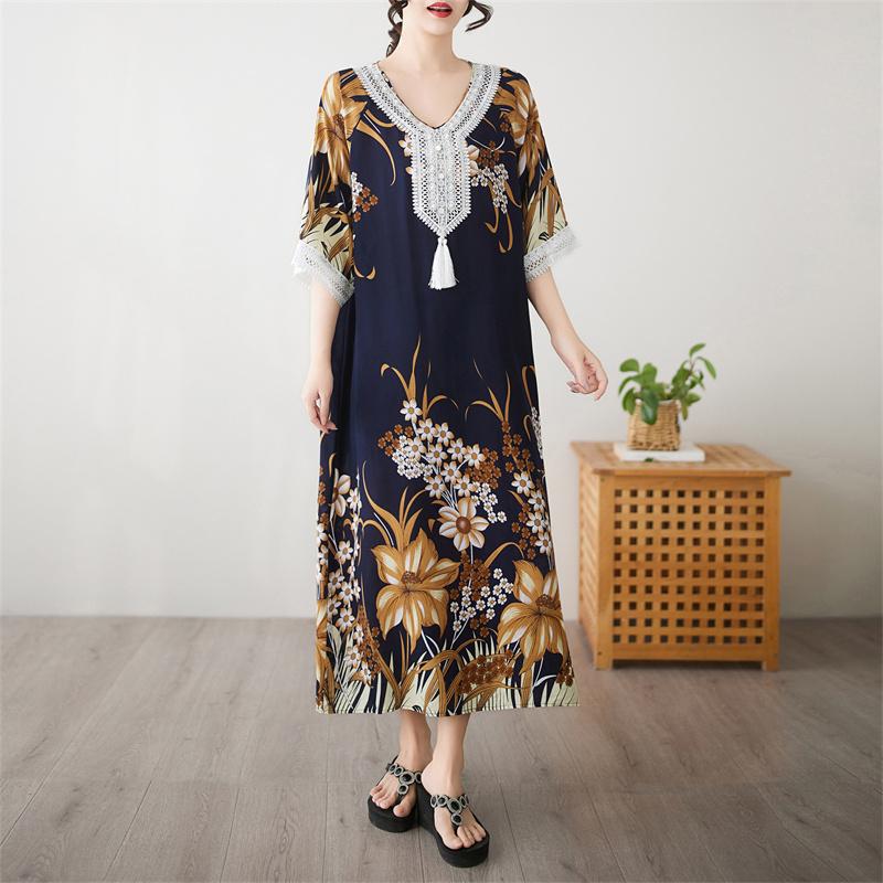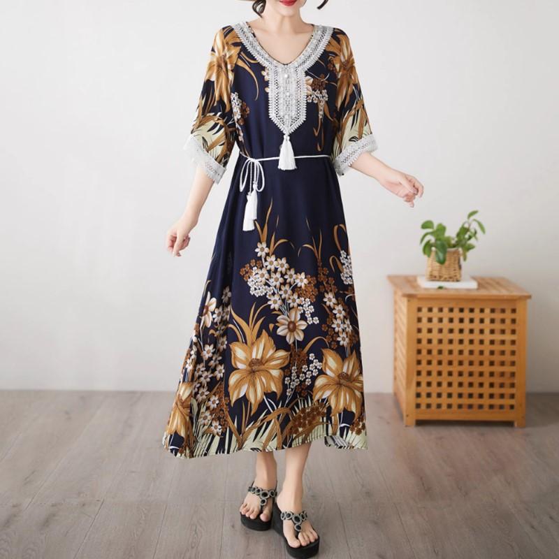 Половина рукава Плюс размер Хлопок винтажный цветочный новый в платьях для женщин повседневный свободный длинный летний платье